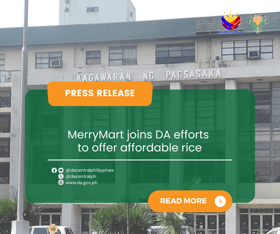 Agriculture Secretary Francisco P. Tiu Laurel Jr. on Friday welcomed an initiative by MerryMart Grocery, a company under listed DoubleDragon Corp., to support the government’s