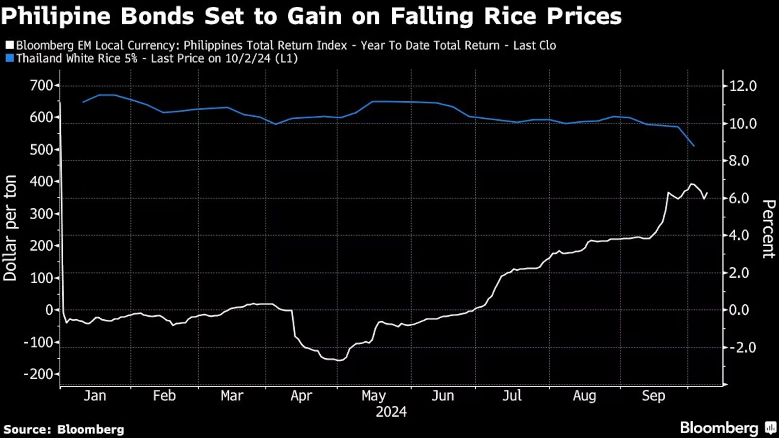 By Malavika Kaur Makol and Karl Lester M. Yap (Bloomberg) — Philippine sovereign bonds are seen extending gains as falling rice prices cool inflation and back the case